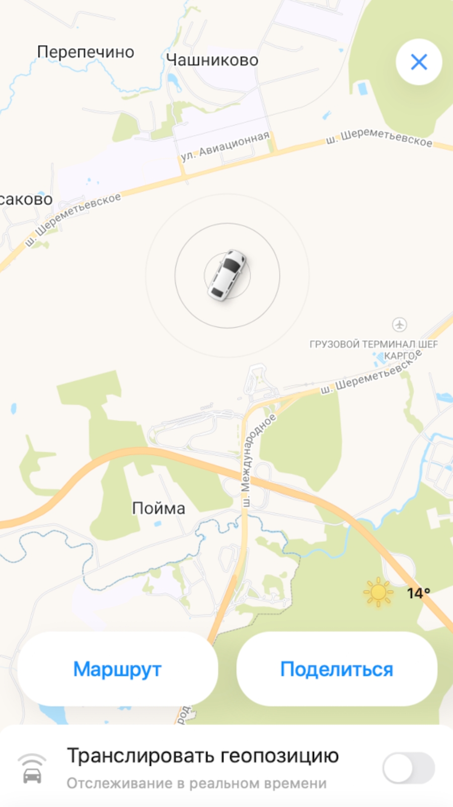 транслировать геопозицию автомобиля.