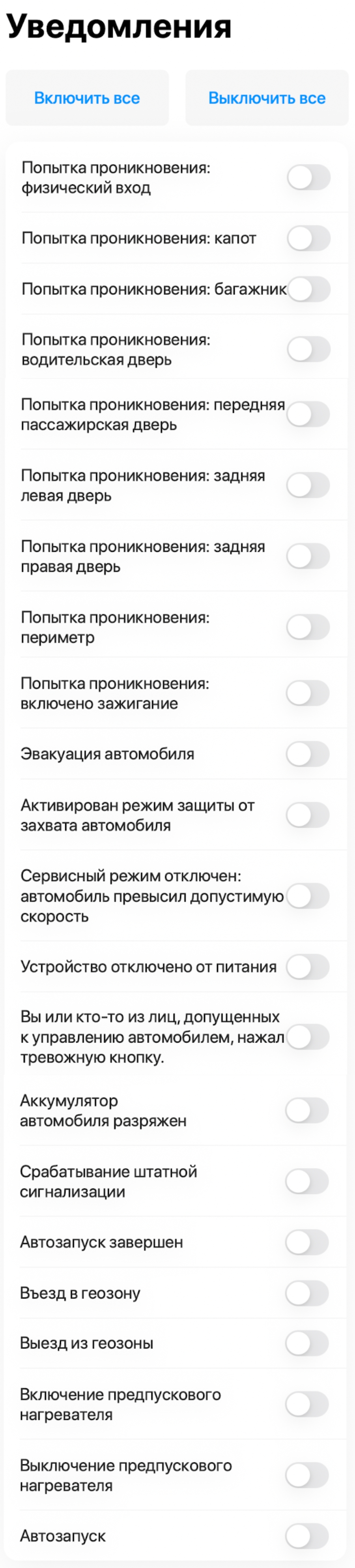 Тревожные уведомления (проникновение по периметру, зажиганию, дверям) приходят с опознавательным звуковым сигналом.