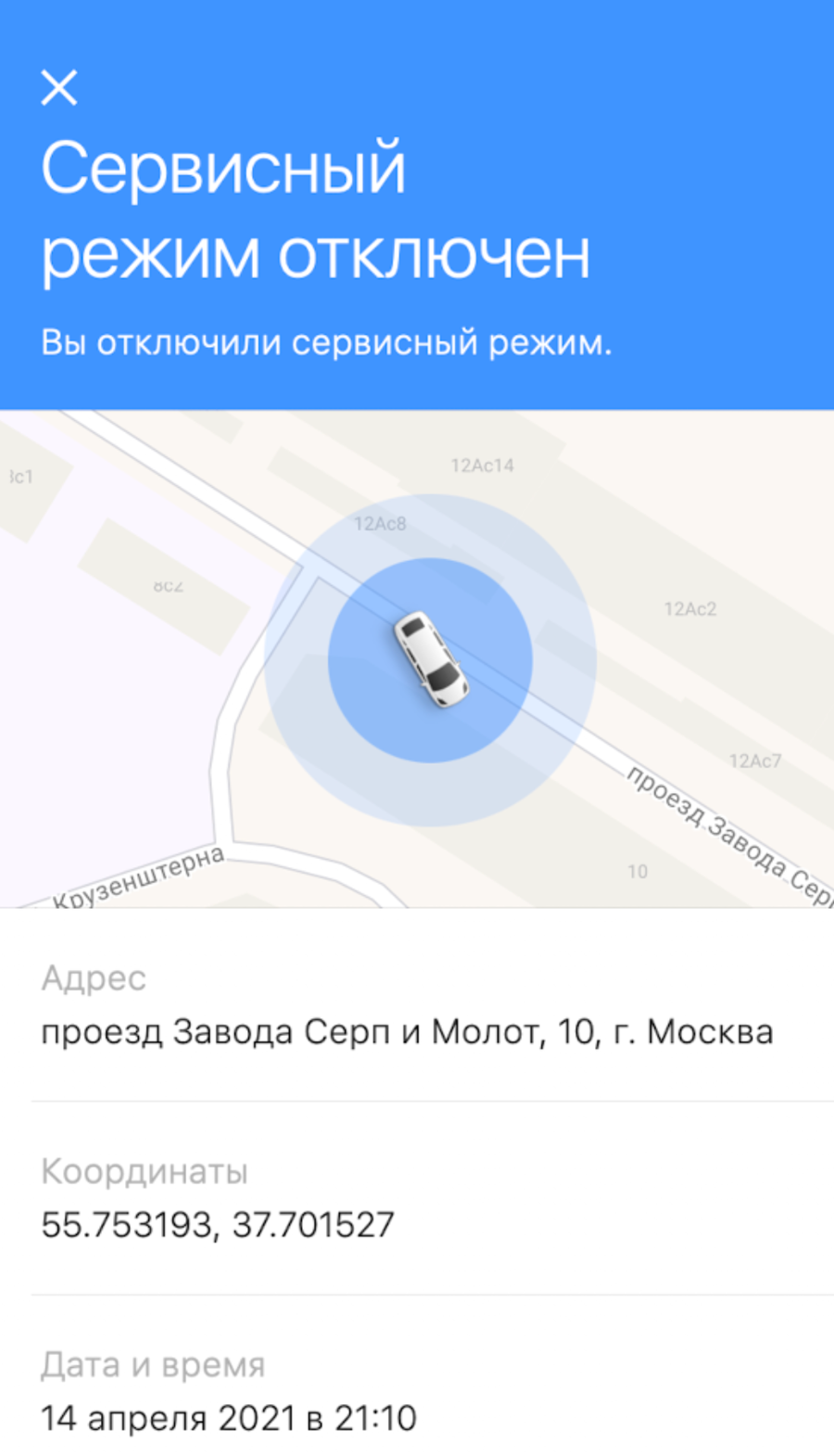 В приложении на экране "Уведомления" доступна информация об истории событий, которые происходили с автомобилем.