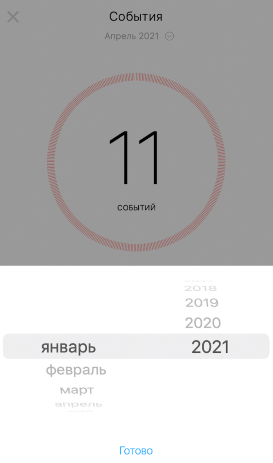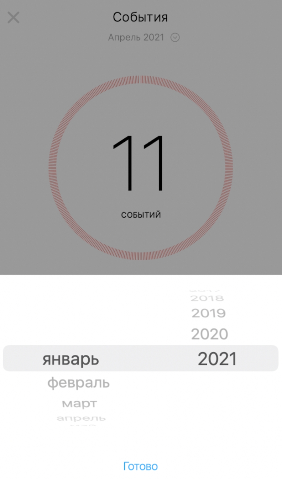Для просмотра статистики по событиям за другой период вы можете выбрать месяц из выпадающего списка или пролистать экран с событиями влево/вправо.
