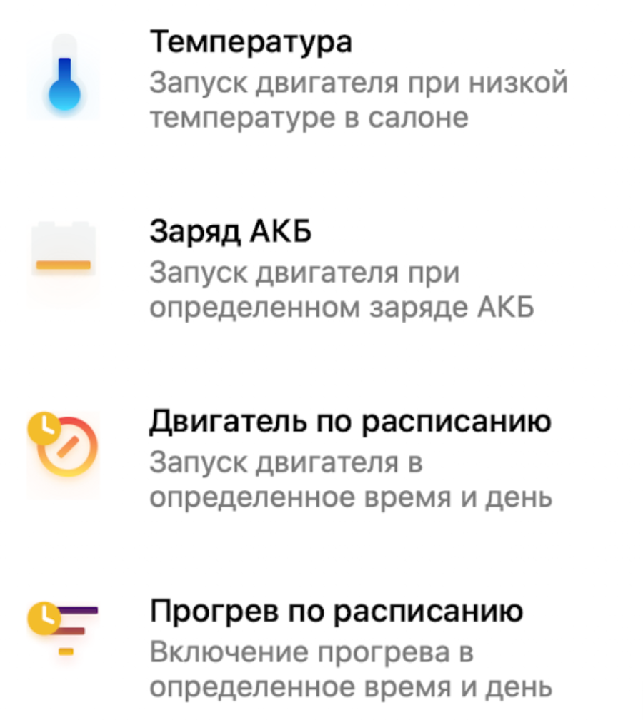Автоматизация запуска двигателя и прогрева позволяет задать следующие сценарии: